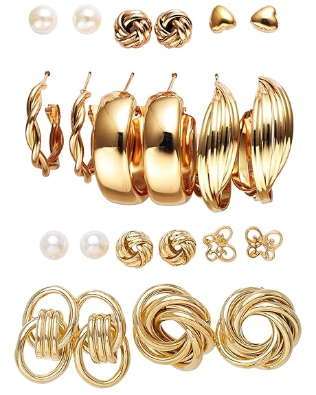 Diva Fashion 11 Pairs Combo Set Latest Stylish Vintage Pearl Earrings for Women Gold Plated Dangle Earrings Heart Butterfly Hoop Earrings Geometric Fashion Jewelry