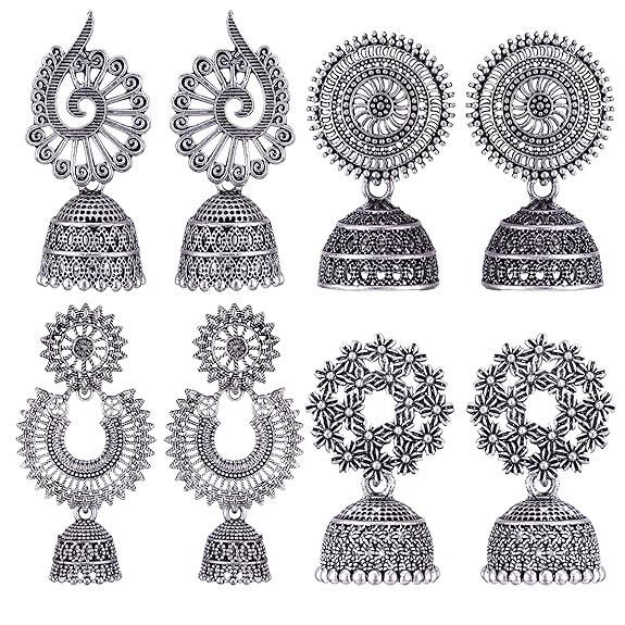 - Silver oxidised earrings combo Peacock Jhumkas Jhumka jhumki Earrings Combo set Ear rings For Women girls Ladies Traditional Wedding Temple Gold Meenakari Ethnic Antique South Indian Round Pearl Moti Feather jhumki combo